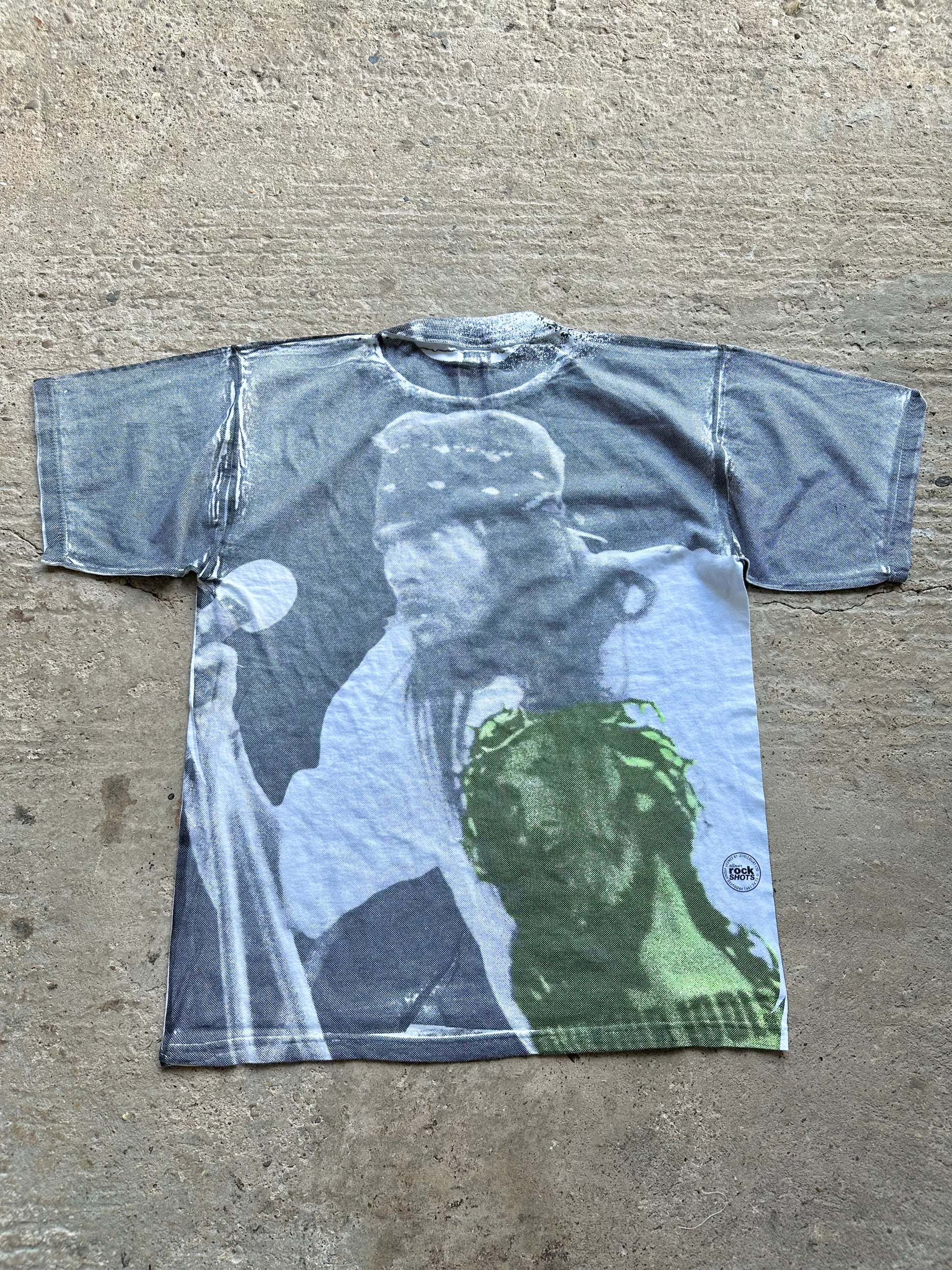 Incredible 1993 all over print Rock Shots promo shirt featuring Axl Rose. Illuminated 'Kill Your Idols' Jesus graphic.