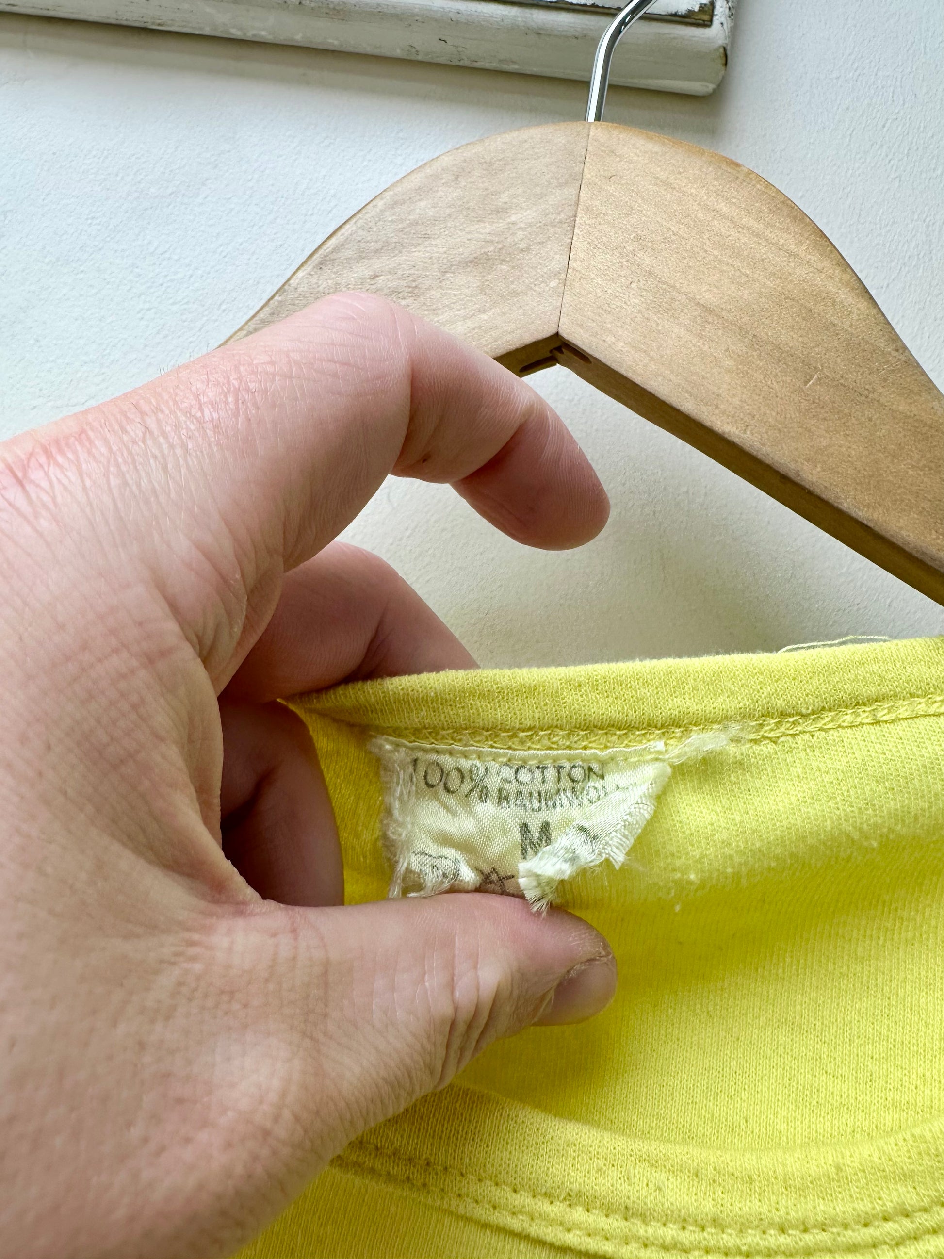 100% cotton tag. Single stitch.